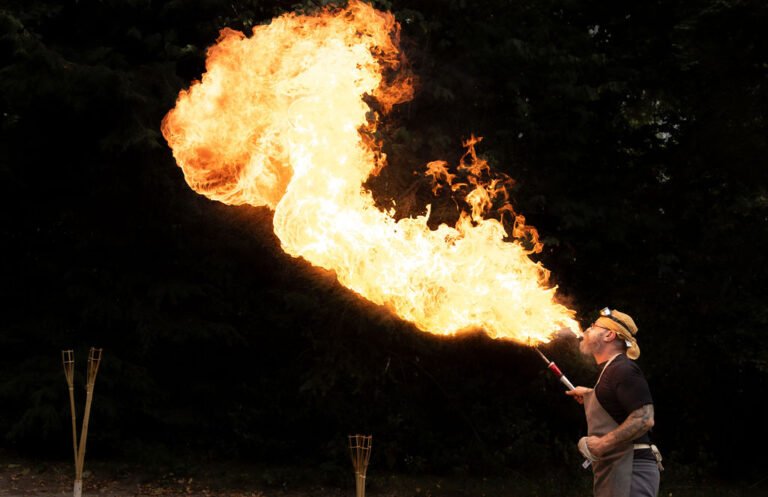 — maar is de draak wel opgesloten of wil hij liever bevrijd worden? Een magische mix van vuurkunst, spel en publieksparticipatie — perfect voor kinderfeestjes, festivals en bijzondere evenementen. Uitgevoerd door een ervaren artiest met oog voor veiligheid en beleving. Boek nu en ‘red de draak’ voor op jouw feestje —