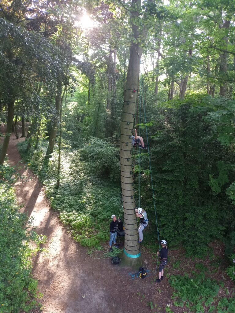 - Unieke setting: Bij voorkeur vindt de activiteit buiten plaats, waarbij veilige, stevige bomen en natuurlijke elementen worden ingezet. Bij ongunstige weersomstandigheden is een hoogwaardige klimwand in uw gymzaal eventueel beschikbaar.
