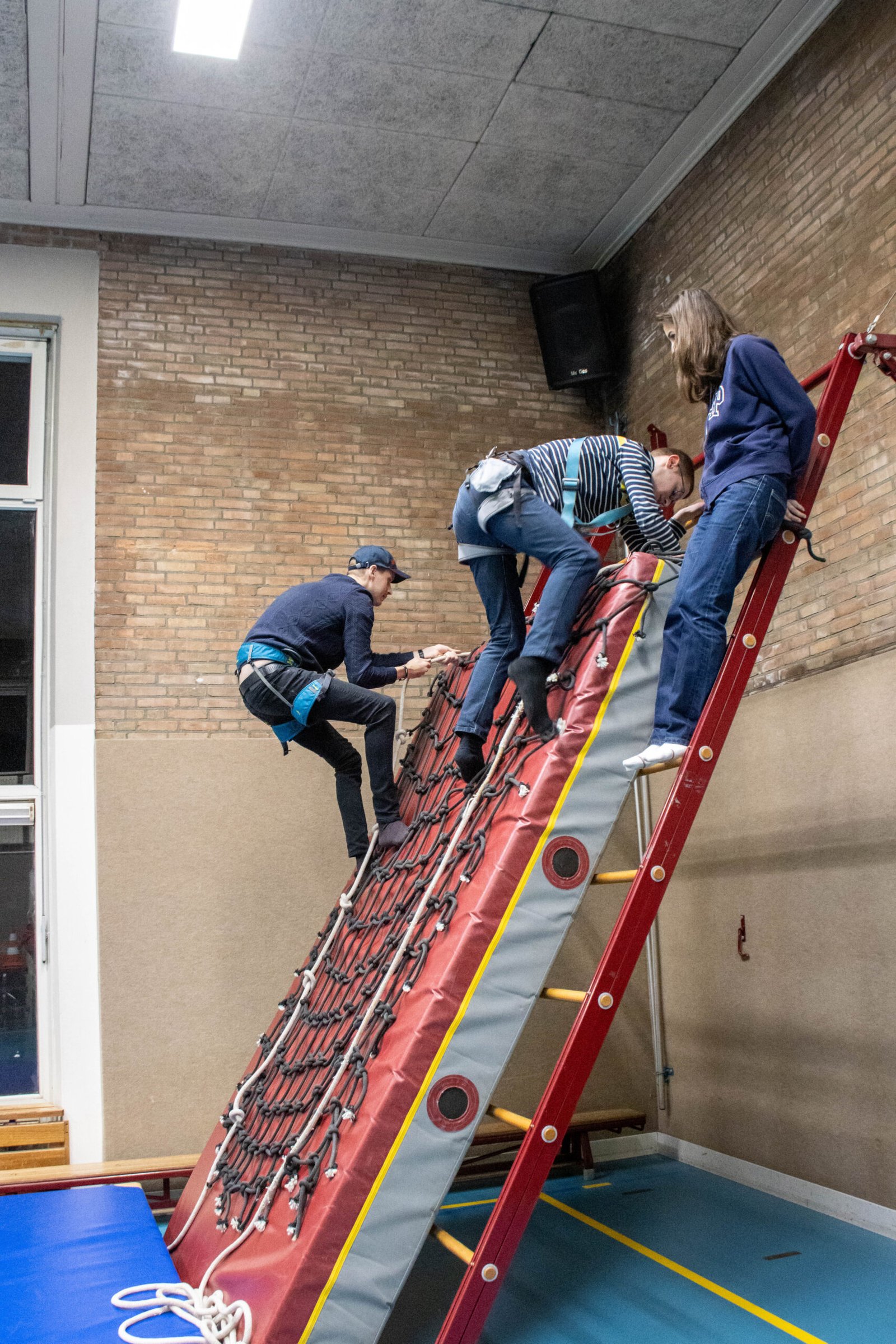 - Unieke setting: Bij voorkeur vindt de activiteit buiten plaats, waarbij veilige, stevige bomen en natuurlijke elementen worden ingezet. Bij ongunstige weersomstandigheden is een hoogwaardige klimwand in uw gymzaal eventueel beschikbaar.